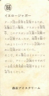 | ゴールド・ウルフ 特長 月の光を受けて、月光電池が 作動している時ダークのロボットで、 それ以外の時は、良心回路が動いて いるので悪者ではなくなる。 |