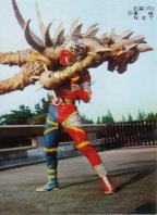 | レッド・コンドル 特長 コンドル光線・・・口ばしが開いて 怪光線が出る。 コンドル手裏剣・・・コンドルの翼の先端 が、十字手裏剣式に回転して飛び出す。 キーンといゆ音と共に出現する。 |
