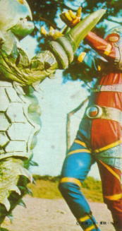 | サソリ・ブラウン 特長 地面、岩地などからドリルのような サソリの手が現れて出現。 殺人光線エネルギー・・・サソリの手の先端 から光熱線を放射し火薬玉のように爆発する。 |