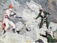| 290 レインボーマン 印度の聖者・ダイバ老人のヨガの秘術を会得更にその魂をうけつぐ奇跡の術によってヤマト・タケシはレインボーマンに生まれかわる。ダイバ聖者の訓えに従って「レインボーマン」は7つの能力をもってあらゆる悪と戦って行く。 |