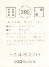 | 285 レインボーダッシュ[2] ●象徴 火をあらわす。 ●色 燃える紅 燎原の火の如く早くはしることができる。そのスピードは猛スピードで、時速200qの速度で新幹線なみのスピードがでる。 |