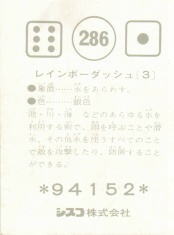 | 286 レインボーダッシュ[3] ●象徴 水をあらわす。 ●色 銀色 池・川・海 などのあらゆる水を利用する術で、雨を呼ぶことや潜水、その他水を使うすべてのことで敵を攻撃したり、防御することができる。 <これはミスプリで内容は「水の化身」のもの> |
