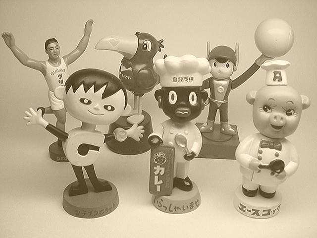 昭和の時代、各メーカーの商品の「カンバン」としてテレビに街頭にお馴染みのキャラクターが勢揃い