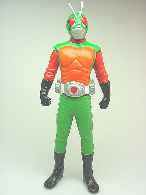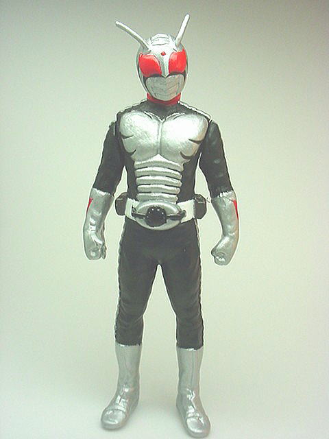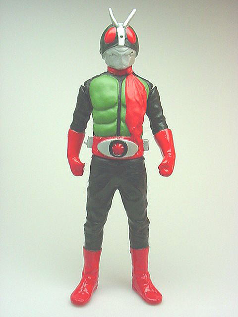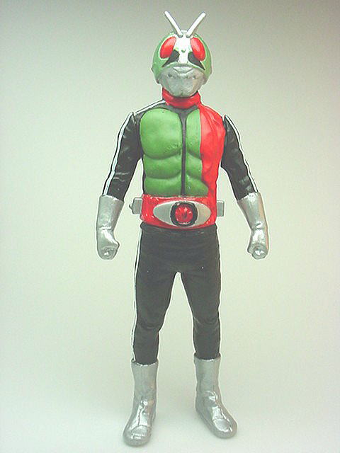| 仮面ライダー1号(新) <正体>本郷 猛 悪の組織「ショッカー」に改造されたが脳改造直前に脱出、ショッカーの怪人と戦った。 再改造でパワーアップし48の技を身につけた。 <敵>ショッカー、ゲルショッカー <主な怪人>蜘蛛男、死神カメレオン ゴキブリ男 <必殺技>ライダーキック、きりもみシュート <マシン>サイクロン3種類 |